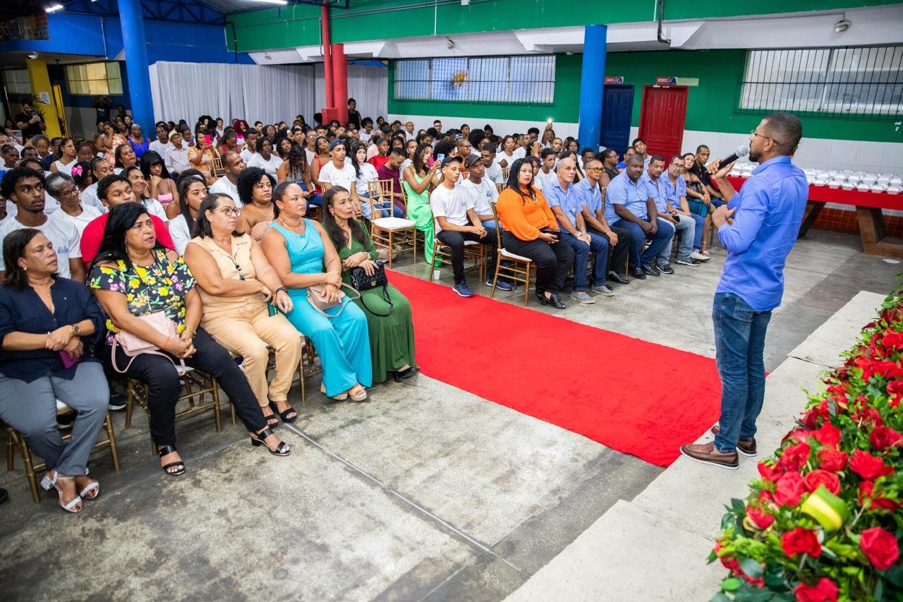 Mais de 130 alunos do programa Jovem, Adulto e Qualificado – EJA e das turmas de fluxo de Candeias receberam, na noite desta quarta-feira, 22, o certificado de conclusão de cursos de qualificação profissional. A cerimônia, realizada no Colégio Professor Dásio, contou com a presença do prefeito Eriton Ramos, do secretário de Educação Gilvanei Pereira, de familiares e profissionais da SEDUC.