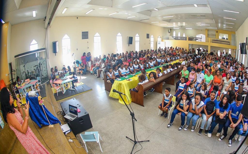 Os alunos da rede municipal de ensino de Candeias lançaram nesta quinta-feira (29.fev), na 2ª Igreja Batista, o livro “Eu e meu lugar no mundo”. A coletânea retrata histórias relacionadas à identidade, apontando para os modos como crianças, adolescentes e jovens apreendem o mundo à sua volta e se veem nele, sendo os protagonistas de suas histórias, por meio de crônicas, contos, desenhos e poemas.