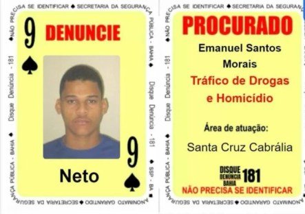 Os foragidos que ocupavam as cartas 9 e 10 de Espadas foram encontrados em Salvador e na cidade de Santa Cruz Cabrália