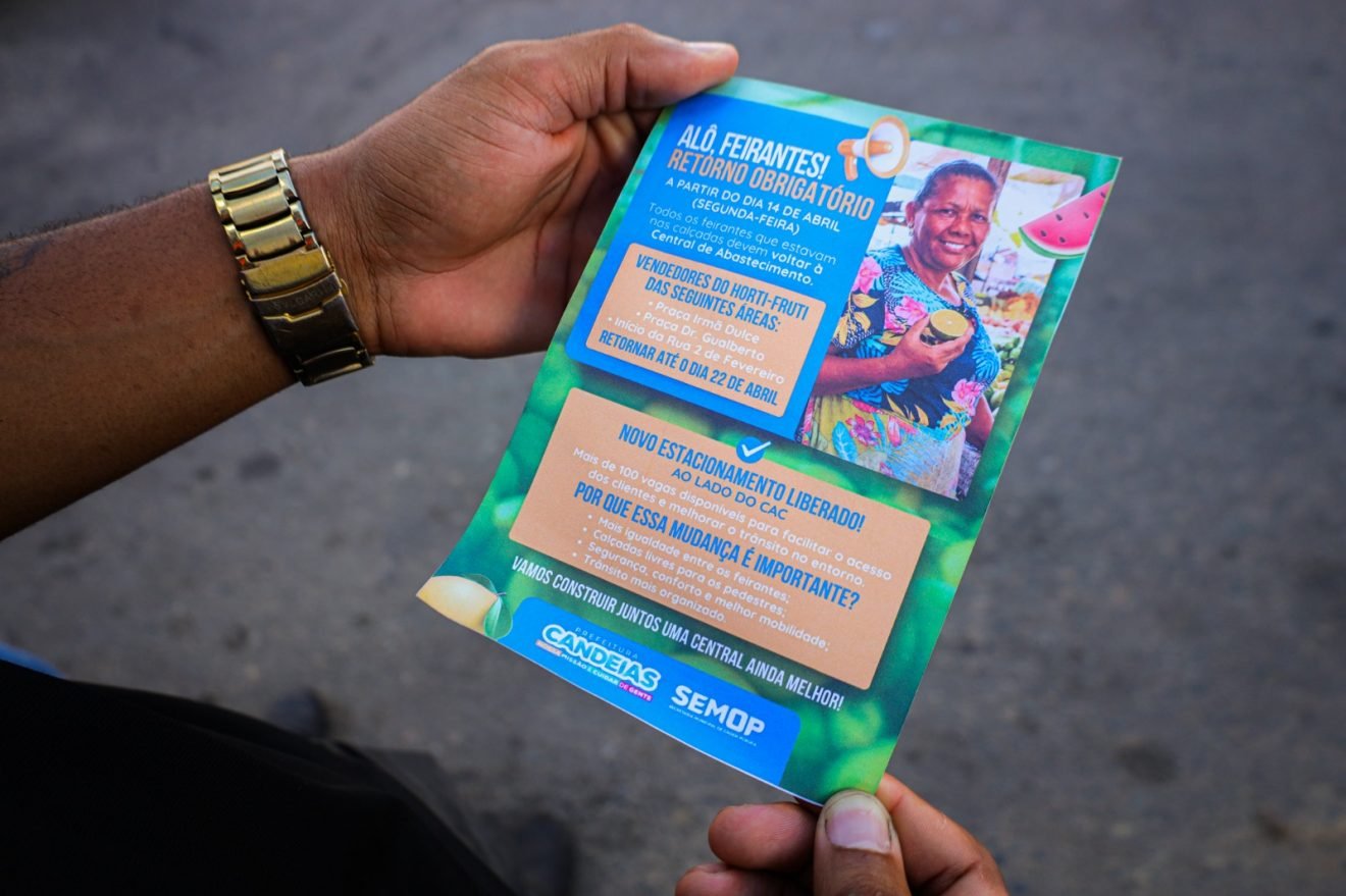 A Prefeitura de Candeias, por meio da Secretaria Municipal de Ordem Pública (SEMOP), já está realocando os feirantes que comercializam nas calçadas da cidade para dentro da Central. Estão convocados a retornar todos os vendedores de hortifrúti que se encontram desde a Praça Irmã Dulce até a Praça Doutor Gualberto e início da 2 de fevereiro.