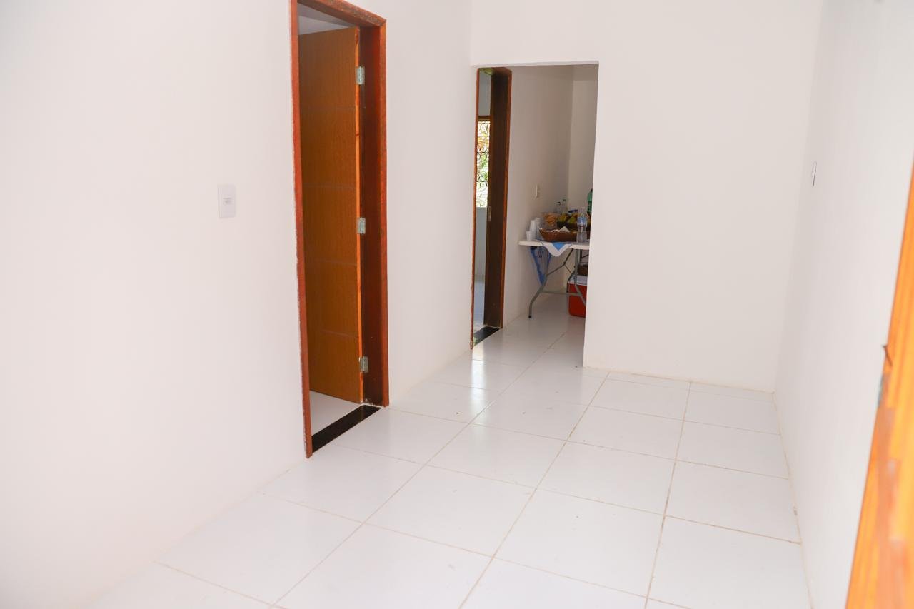 Antes sem banheiro, destelhada e com problemas estruturais, como relatou o morador, a casa recebeu intervenção em toda a sua estrutura, incluindo serviços como pintura, troca do telhado, reboco de paredes, melhorias elétricas e hidráulicas, além da troca de portas, janelas, pia e a criação de um banheiro (suíte).