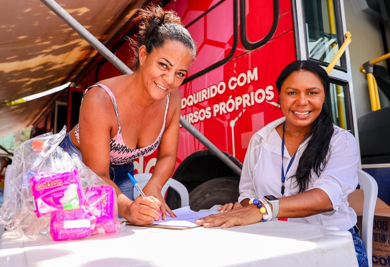 Além dos serviços de saúde, os serviços sociais também estiveram disponíveis para a população, como entrega de absorventes, encaminhamentos para programas sociais e orientações voltadas à assistência social.